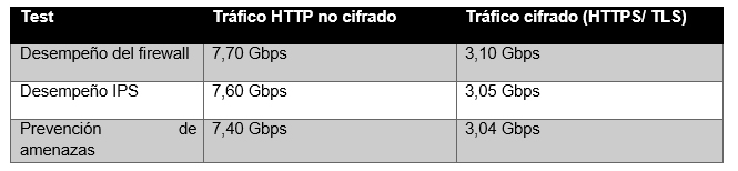 - Prevención de amenazas: firewall con las funcionalidades de IPS, antivirus, antispyware y control de aplicaciones habilitadas.